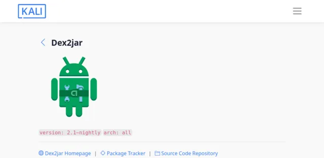 Dex2Jar is an open-source command-line toolset, pre-installed on Kali Linux at /usr/bin/d2j-dex2jar, designed for reverse engineering Android applications by converting Dalvik Executable (.dex) files into Java .class files, typically packaged as .jar archives. Developed by Panxiaobo (pxb1988) under the Apache 2.0 License, Dex2Jar facilitates the analysis of Android APKs by transforming compiled .dex code into a format readable by Java decompilers like JD-GUI. Ideal for cybersecurity researchers, ethical hackers, and Android developers, it supports malware analysis, vulnerability assessment, and app debugging.