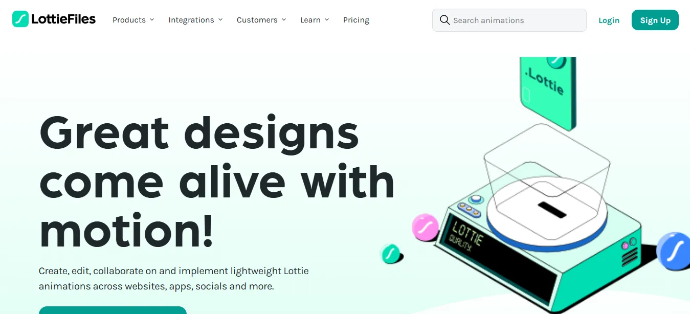 LottieFiles is an animation workflow platform for designers for creating and integrating animations.