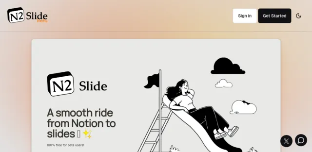 N2 Slide is a product developed by Zi, a designer and solo developer, who created it out of frustration with the manual process of converting Notion documents into slides. The tool aims to address the challenge faced by Notion power users who frequently need to transform their structured content into presentations for meetings, reports, or educational purposes. Notion, a popular all-in-one workspace for note-taking and project management, lacks native slide creation features, making tools like N2 Slide essential for users seeking seamless integration with presentation needs.