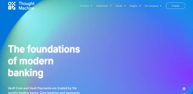 - Thought Machine smart contracts for banking innovation: Enables custom product design.